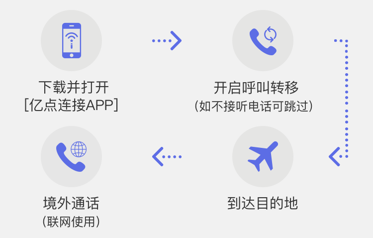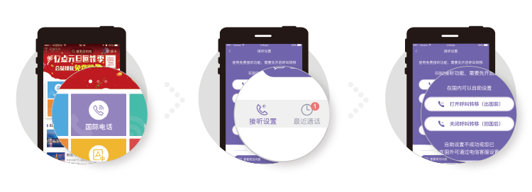 打开亿点连接APP-国际电话-免费接听设置-打开呼叫转移(出国前)-复制代码-打开系统电话-粘贴代码-点击拨打,成功开启后即可在境外免费接听电话(如设置失败,可通过运营商客服设置)